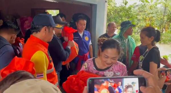 ชาวบ้านร้องรอความช่วยเหลือ อย่างไรก็ตาม มีรายงานว่า ระหว่างการลงพื้นที่เยี่ยมเยียนผู้ประสบภัยที่บ้านหนองเปล หมู่ 9 ตำบลพลายวาส อำเภอกาญจนดิษฐ์ อธิบดี ปภ. ไม่ได้ลงจากรถเพื่อมอบถุงยังชีพให้กับชาวบ้านที่มารอรับถึงแม้ว่าจะมีระดับน้ำท่วมขังประมาณ 60 เซนติเมตร ทำให้ชาวบ้านต้องรอความช่วยเหลือเป็นเวลานานเกือบชั่วโมง