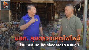 นอภ.ลุยตรวจเหตุไฟไหม้ชัยภูมิ ร้านขายสินค้าเบ็ดเตล็ดกลางตลาดสด ยันไม่ใช่ร้านขายพลุ