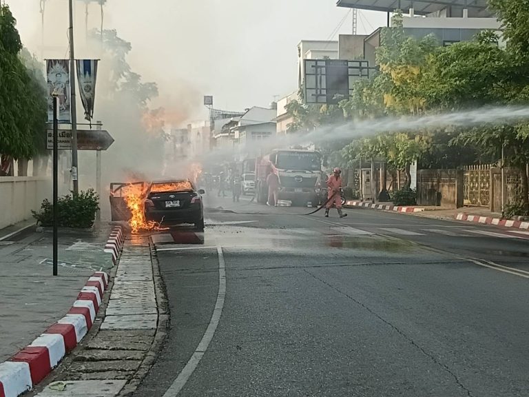 มุกดาหาร หวิดดับยกครัวอดีตข้าราชการครู ไฟไหม้รถทั้งคัน