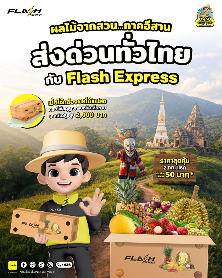 แฟลช เอ็กซ์เพรส เดินหน้าสนับสนุนชาวสวนภาคอีสาน ส่งผลไม้ด่วนทั่วไทย ไม่มีวันหยุดพร้อมมอบส่วนลดค่าจัดส่ง 10% ให้เกษตรกรที่ลงทะเบียนกับกรมส่งเสริมการเกษตร