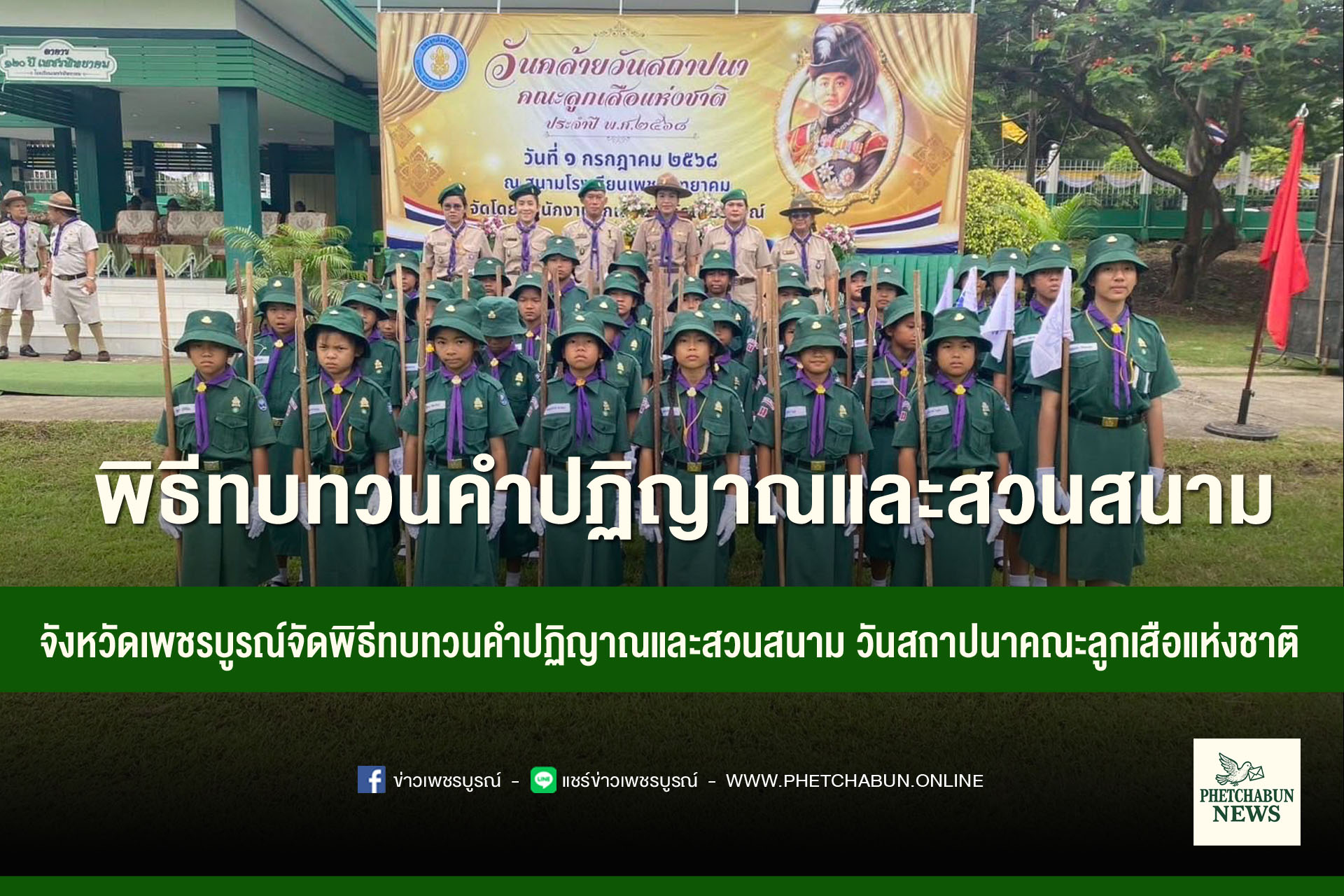 วันที่ 1 กรกฎาคม 2568 เวลา 09.00 น. ณ สนามโรงเรียนเพชรพิทยาคม อำเภอเมืองเพชรบูรณ์ จังหวัดเพชรบูรณ์ นายศรัณยู มีทองคำ ผู้ว่าราชการจังหวัดเพชรบูรณ์ ในฐานะผู้อำนวยการลูกเสือจังหวัด เป็นประธานในพิธีทบทวนคำปฏิญาณและสวนสนาม เนื่องในวันคล้ายวันสถาปนาคณะลูกเสือแห่งชาติ ประจำปี 2568