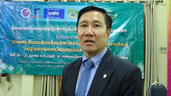 อ่างทอง – วันที่ 20 ตุลาคม 2568 เวลา 10.00 น. ที่องค์การบริหารส่วนตำบลตลาดใหม่ อำเภอวิเศษชัยชาญ จังหวัดอ่างทอง นายทัศนัย สุธาพจน์ รองผู้ว่าราชการจังหวัดอ่างทอง เป็นประธานเปิดโครงการอบรมเชิงปฏิบัติการเพื่อเพิ่มศักยภาพด้านการแสดงลิเก