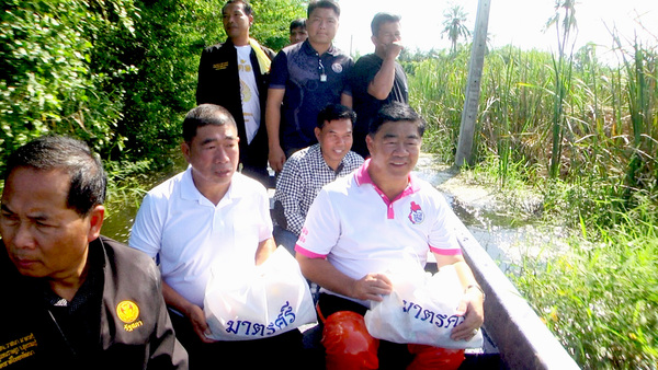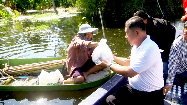 คณะลงพื้นที่ได้นำถุงยังชีพที่ได้รับการสนับสนุนจากบริษัทในเครือมาตรศรีไปมอบให้ เพื่อบรรเทาความเดือดร้อนเบื้องต้น เนื่องจากหลายพื้นที่ยังไม่มีหน่วยงานรัฐเข้าให้การช่วยเหลือ บางหมู่บ้านน้ำท่วมสูงจนประชาชนไม่สามารถออกมารับถุงยังชีพได้ ต้องนำถุงยังชีพใส่เรือเข้าไปแจกถึงหน้าบ้าน ขณะที่บางรายต้องลุยน้ำสูงกว่า 1 เมตรออกมารับของช่วยเหลือเอง