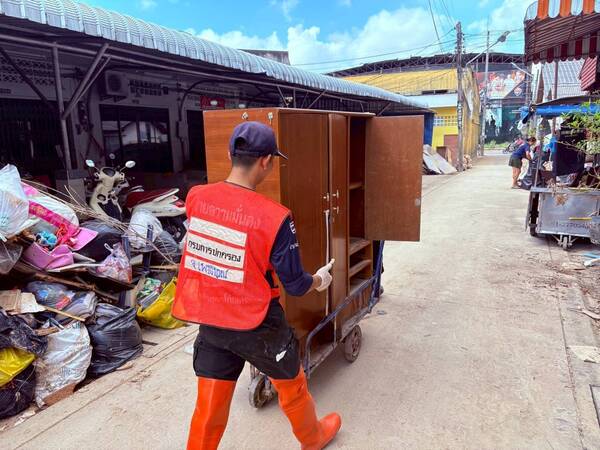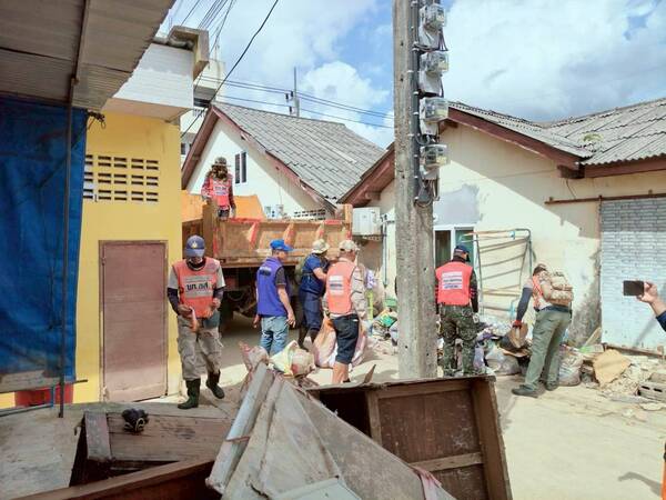 ชุดที่ 2 ประกอบด้วยกำลังพล อส. จำนวน 11 นาย ปฏิบัติร่วมกับเทศบาลสำโรง อบจ.สงขลา และ สนง.ปภ.เพชรบูรณ์ ลงพื้นที่ ซอยพิมพ์สีทอง ช่วยฟื้นฟูและเก็บเศษปฏิกูลหลังน้ำลด ซึ่งการปฏิบัติงานเป็นไปด้วยความเรียบร้อย กำลังพลมีขวัญและกำลังใจดี พร้อมเดินหน้าช่วยเหลือประชาชนอย่างเต็มกำลัง
