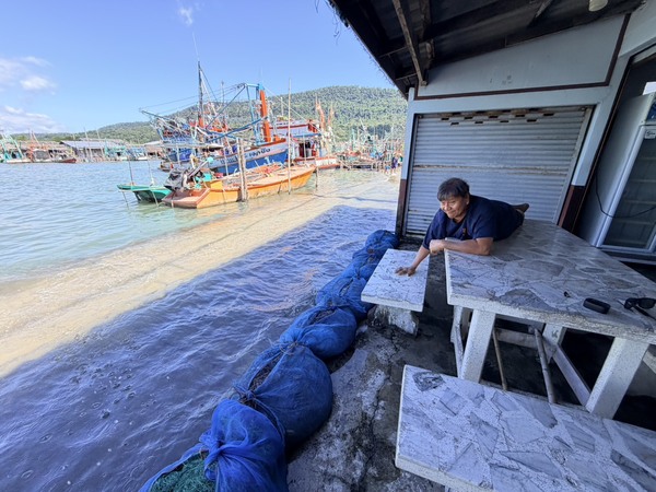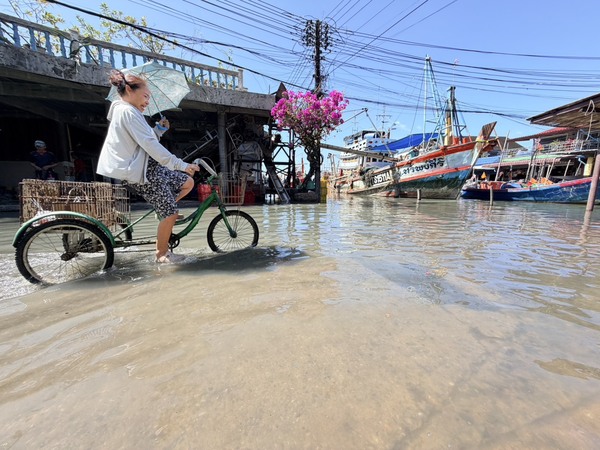นางกิมฮวย นวลหงส์ อายุ 65 ปี ชาวบ้านริมคลองมะขาม เปิดเผยว่า น้ำทะเลหนุนไหลเข้าท่วมบ้านตั้งแต่เมื่อวาน ก่อนระดับน้ำจะลดลง และทราบว่าวันนี้จะมีน้ำสูงกว่าเดิม สามีจึงนำอวนมาวางหน้าบ้านเพื่อป้องกันน้ำไหลเข้าบ้าน แต่วันนี้น้ำยังคงเอ่อเข้ามาเล็กน้อย
