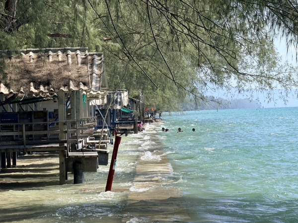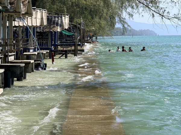 ด้านหาดบานชื่น ต.ไม้รูด อ.คลองใหญ่ ชายหาดชื่อดังของจังหวัดตราด พบว่าน้ำทะเลหนุนสูงจนล้นเขื่อนกั้นคลื่น ทำให้คลื่นซัดเข้าฝั่ง และเอ่อเข้าท่วมบางส่วนบริเวณซุ้มนั่งพักผ่อน อย่างไรก็ตาม ไม่มีลมแรงหรือคลื่นสูง นักท่องเที่ยวจึงยังสามารถลงเล่นน้ำได้ตามปกติ
