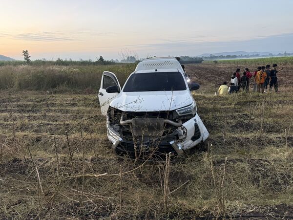 ตำรวจทางหลวงกาญจนบุรีไล่ล่ารถกระบะต้องสงสัยขนแรงงานต่างด้าวจากชายแดน เร่งเครื่องหนีกว่า 40 กิโลเมตร ก่อนเสียหลักพุ่งเข้าไร่อ้อย คนขับทิ้งรถหนี ส่วนแรงงานแตกฮือเข้าป่า ตำรวจต้องใช้ลำโพงประกาศเรียกออกมาคุมตัวได้รวม 19 คน