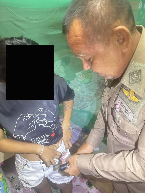 หลังซุ่มดูสถานการณ์ พบชายรายหนึ่งทราบชื่อภายหลังคือ นายตูน ขับรถจักรยานยนต์เข้าไปภายในบ้าน ก่อนจะเดินออกมา เจ้าหน้าที่จึงแสดงตนเข้าตรวจค้นทันที พบยาบ้า 2 เม็ด ซุกอยู่ในกระเป๋ากางเกง นายตูนรับสารภาพว่าเพิ่งซื้อยาบ้ามาจาก น.ส.ภัณฑิกา ในราคาเม็ดละ 40 บาท เพื่อนำไปเสพ
