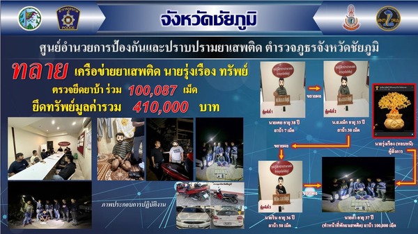 บุกรังลับเกษตรสมบูรณ์! ตร.ชัยภูมิ ทลายเครือข่ายยานรก ยึดยาบ้ากว่า 1 แสนเม็ด มูลค่ากว่า 4 แสน
