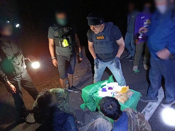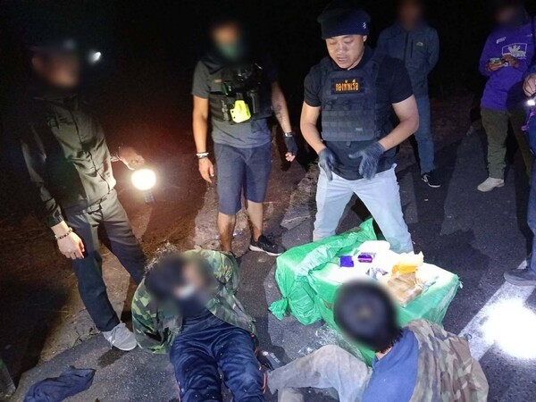 เจ้าหน้าที่จัดชุดลาดตระเวนทางบก กระทั่งเวลา 02.00 น. พบชายต้องสงสัย 3 คน เฝ้าวัตถุต้องสงสัยริมถนนหมายเลข 2074 เมื่อแสดงตัวเข้าตรวจสอบ กลุ่มดังกล่าวทิ้งกระสอบแล้ววิ่งหลบหนี สามารถควบคุมตัวได้ 2 คน ทราบชื่อภายหลังคือ ท้าวเตียงคำ พรมโสพา อายุ 27 ปี และท้าวบุนเลิด พรมโสพา อายุ 33 ปี ชาวแขวงสะหวันนะเขต สปป.ลาว พร้อมของกลางยาบ้า 3 กระสอบ รวมประมาณ 540,000 เม็ด