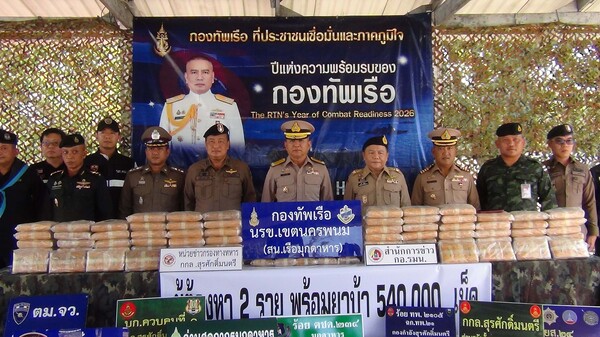 มุกดาหาร – หน่วยเรือรักษาความสงบเรียบร้อยตามลำน้ำโขง (นรข.) ภายใต้การอำนวยการของ พล.ร.ต.ณรงค์ เอมดี ผบ.นรข. พร้อมฝ่ายปกครองจังหวัดมุกดาหาร และหน่วยความมั่นคง แถลงผลจับกุมยาเสพติดประเภท 1 (ยาบ้า) จำนวน 540,000 เม็ด หลังรับแจ้งจากสายลับว่าจะมีการลักลอบรับ–ส่งยาเสพติดในพื้นที่ บ้านดอนตาลผาสุก ต.ดอนตาล อ.ดอนตาล จ.มุกดาหาร