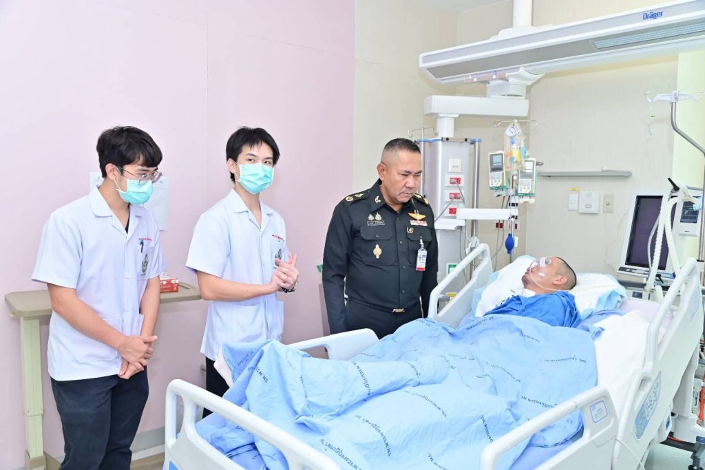 พร้อมกันนี้ ได้สอบถามอาการของกำลังพลและครอบครัวอย่างใกล้ชิด โดยได้เข้าเยี่ยมกำลังพลที่ได้รับบาดเจ็บจากแรงระเบิดและการปะทะที่เข้ารับการรักษาหลายราย ณ อาคารเฉลิมพระเกียรติ สมเด็จพระนางเจ้าสิริกิติ์ พระบรมราชินีนาถ ทั้งในหอผู้ป่วยศัลยกรรมพิเศษและหอผู้ป่วยวิกฤต อาทิ ร้อยเอก ณัฐพล ทองแดง ร.2 พัน.1/กองทัพภาคที่ 1 มีภาวะติดเชื้อและลิ้นหัวใจอักเสบจากการปฏิบัติหน้าที่หน้าแนว, พลทหาร วันชัย รำไพพนา และพลทหาร จักรภัทร อันตะโก ร.16 พัน.1/กองทัพภาคที่ 2 ได้รับบาดเจ็บจากแรงระเบิดมีเลือดออกในสมอง รวมถึง พันโท อิทธิพงศ์ กิจค้า พัน.ซบร.กรม.สน. กองพลทหารราบที่ 11/กองทัพภาคที่ 1 และสิบเอก พรชัย บุญใส ร.2 พัน.1/กองทัพภาคที่ 1 ที่ได้รับบาดเจ็บสาหัสจากแรงระเบิดและยุทโธปกรณ์ทางทหาร