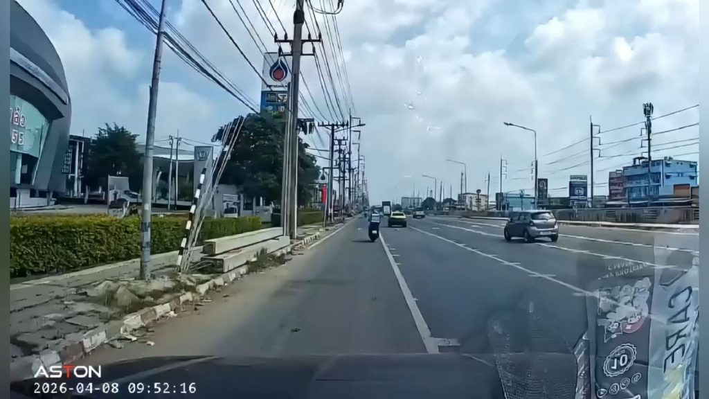 จยย.พุ่งชนท้ายเก๋งเปลี่ยนเลนทับเส้นทึบ เจ็บ 1 ราย กล้องหน้ารถจับภาพชัด ขณะรถยนต์เบี่ยงเลนตัดหน้า ก่อนเกิดเหตุชนอย่างจัง