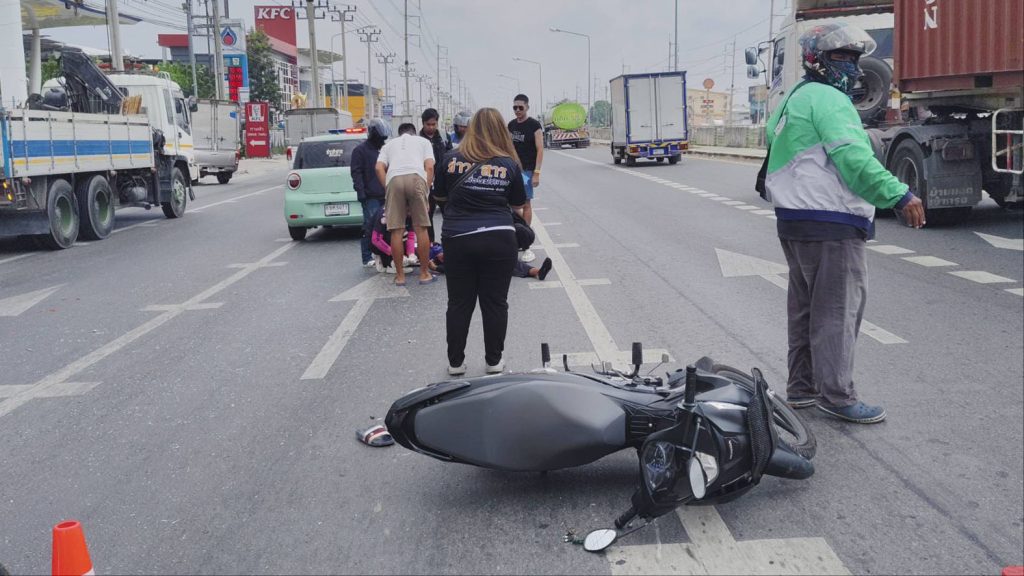 เมื่อเวลา 09.55 น. วันที่ 8 เมษายน 2569 ตำรวจ สภ.บางปู รับแจ้งเหตุรถจักรยานยนต์ชนท้ายรถยนต์ บริเวณถนนตำหรุ – บางพลี ใกล้สถานีบริการน้ำมัน ปตท. คลอง 9 ในพื้นที่ ตำบลแพรกษาใหม่ อำเภอเมือง จังหวัดสมุทรปราการ จึงประสานเจ้าหน้าที่มูลนิธิร่วมกุศลสมุทรปราการ เข้าตรวจสอบ