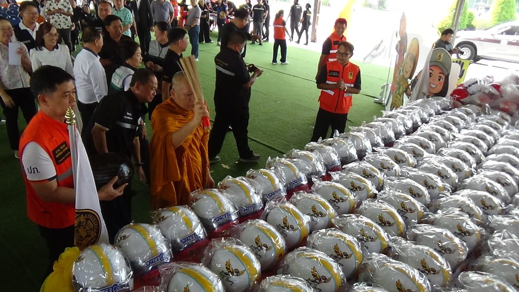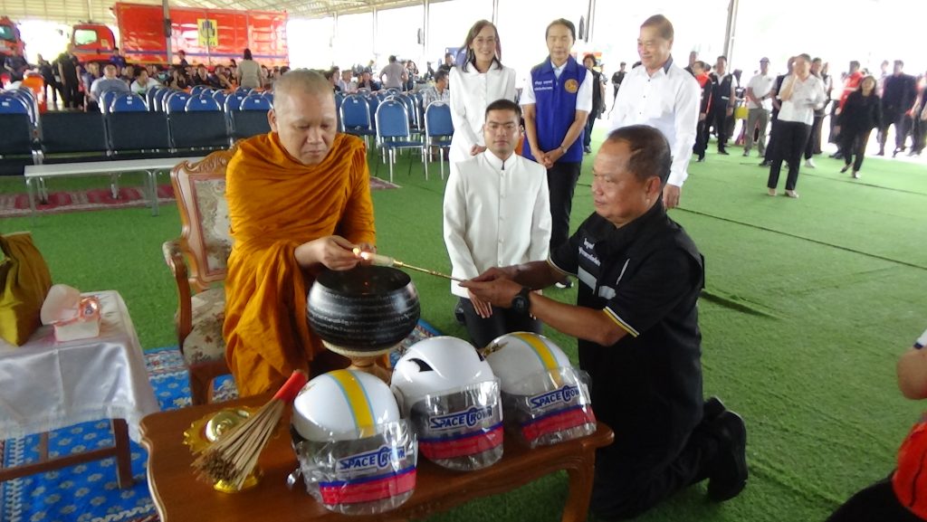 กิจกรรมสำคัญ คือ พิธีเจริญพระพุทธมนต์และปะพรมน้ำมนต์บนหมวกนิรภัย “รุ่นฅนหัวแข็ง” รุ่นแรก จำนวน 3,391 ใบ จากพระวชิรภาวนาภิรัต (แก้ว ธรรมทส ทนติพโล) เจ้าอาวาสวัดตะโก จังหวัดพระนครศรีอยุธยา พระสุวรรณโสภณ เจ้าคณะจังหวัดอ่างทอง และพระสงห์ผู้ทรงสมณศักดิ์ในจังหวัดอ่างทอง