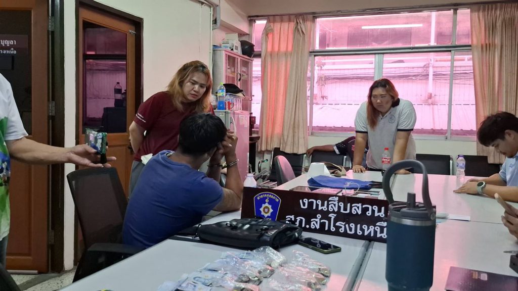 หลังจากที่ฝ่ายสืบสวนตรวจสอบรูปพรรณสัณฐาน พบว่าเป็นคนร้ายรายเดียวกันที่ก่อเหตุทั้งสองครั้งนี้ ด้าน พ.ต.อ. วิโรจน์ ตัดโส ผกก.สภ.สำโรงเหนือ จึงสั่งการให้ฝ่ายสืบสวนของ สภ.สำโรงเหนือออกไล่ล่าตามจับกุมตัวคนร้ายรายนี้ให้ได้โดยเร็ว ล่าสุดช่วงบ่ายที่ผ่านมา ตำรวจฝ่ายสืบสวนของ สภ.สำโรงเหนือ นำโดย พ.ต.ท. จุลินทร์ ตลาดธานี รองผู้กำกับสืบสวนของ สภ.สำโรงเหนือ และสารวัตรสืบสวนของ สภ.สำโรงเหนือ และตำรวจฝ่ายสืบสวน ร่วมกันออกหาเบาะแสของคนร้ายรายนี้ จนกระทั่งไปพบเบาะแสของคนร้ายรายนี้ ตระเวนอยู่ย่านบางนา ฝ่ายสืบสวนจึงนำกำลังออกไล่ล่าจนไปพบตัวว่า ชายลักษณะรูปพรรณตรงตามคนร้ายที่ก่อเหตุลักทรัพย์เมื่อวันที่ 10 เม.ย.69 และ 15 เม.ย.69 ขับขี่รถจักรยายนต์ คันหมายเลขทะเบียน ศบง – 821 กทม. อยู่บริเวณสามแยกลาซาล แขวง/เขต บางนา กทม. จึงได้แสดงตัวและขอตรวจค้น ซึ่งจากการสอบถามจึงชื่อว่า นายเก่ง คำทอง อายุ 35 ปี เป็นบุคคลไม่มีสถานะทางทะเบียน และจากการตรวจค้นรถพบของกลางจำนวนหลายรายการ ซึ่งจาการสอบถามนายเก่ง คำทอง รับว่าตนเป็นคนก่อนเหตุลักทรัพย์ ตามวันเวลาและสถานที่เกิดเหตุจริง เจ้าหน้าที่ตำรวจจึงได้นำตัวมาที่ สภ.สำโรงเหนือ จัดทำบันทึกจับกุม สอบปากคำขยายผล