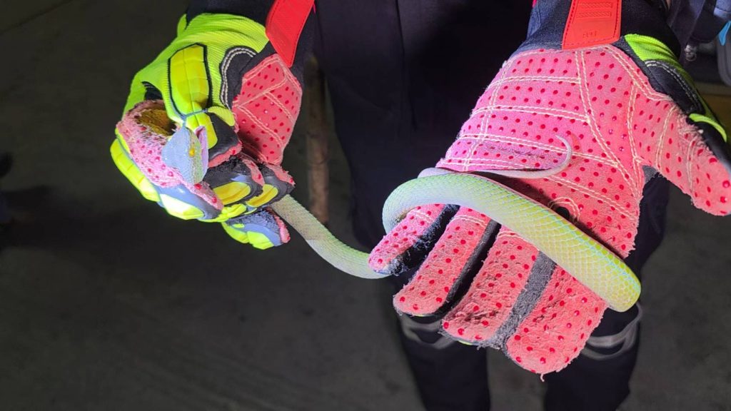 ต่อมาเจ้าหน้าที่กู้ภัยมูลนิธิร่วมกุศลสมุทรปราการพร้อมอุปกรณ์จับสัตว์เลื้อยคลาน ได้เข้าตรวจสอบรถยนต์นิสสัน มาร์ช สีบลอนท์ ทะเบียน 1กฐ 1325 กทม. ของคนไข้รายดังกล่าวอย่างละเอียด โดยใช้เวลากว่า 20 นาที ในการมุดค้นตามซอกหลืบ จนกระทั่งพบตัวการซ่อนตัวอยู่ในรถ เมื่อนำออกมาได้พบว่าเป็น “งูเขียวหางไหม้” ขนาดความยาวประมาณ 30 เซนติเมตร จึงได้นำใส่ภาชนะที่มิดชิดแล้วนำไปปล่อยคืนสู่ธรรมชาติ เบื้องต้นคนไข้รายดังกล่าวอยู่ในความดูแลของแพทย์อย่างใกล้ชิด และอาการปลอดภัยแล้ว